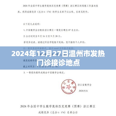 本文为您介绍了2024年12月27日温州市发热门诊的接诊地点及相关注意事项,在这个特殊的季节里,我们要关注自己的身体健康,做好预防工作,如遇到健康问题,请及时就医,遵循医生的指导进行治疗,希望本文能为您带来帮助,祝您度过一个健康的冬天。