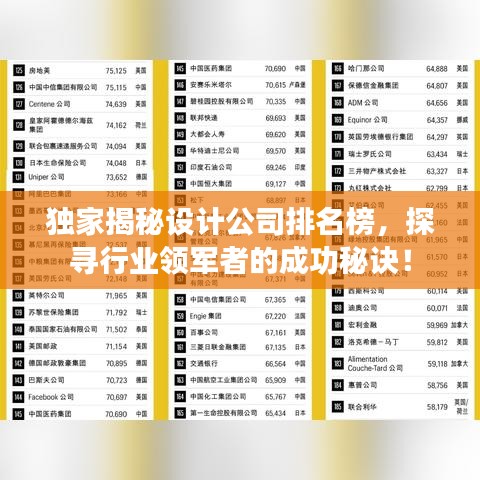 随着科技的飞速发展和全球化的推进,设计行业正在经历一场前所未有的变革,设计公司如雨后春笋般涌现,如何在众多公司中脱颖而出,成为业界关注的焦点,本文将根据全网数据,独家揭秘设计公司排名,带您一探行业领军者的奥秘。