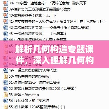 解析几何构造是数学学科中的重要分支,涉及图形的性质、空间关系以及几何图形的构造等方面,本文将围绕“解析几何构造类专题课件”展开讨论,帮助读者深入理解几何构造的核心要素,掌握解析几何的基本方法和应用。