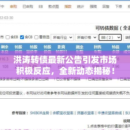 洪涛转债的最新公告引发了市场的广泛关注,这篇公告涵盖了公司的最新动态、经营状况以及未来发展规划等重要信息,对于投资者来说具有重要的参考价值,本文将详细介绍洪涛转债最新公告的内容,并探讨其对公司及市场的影响。
